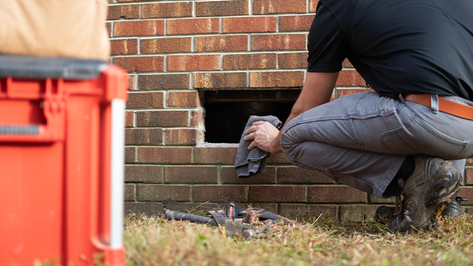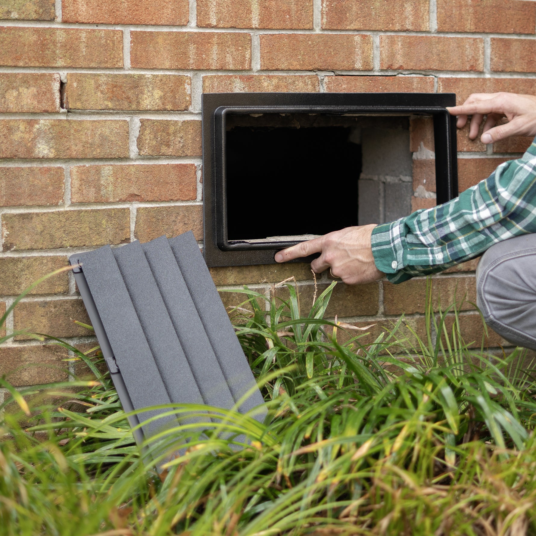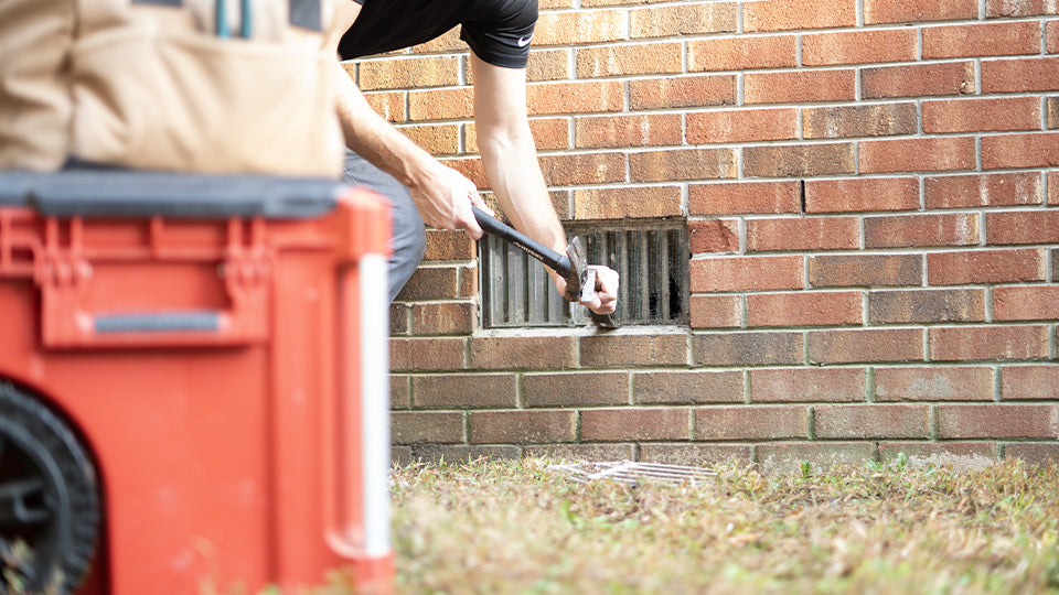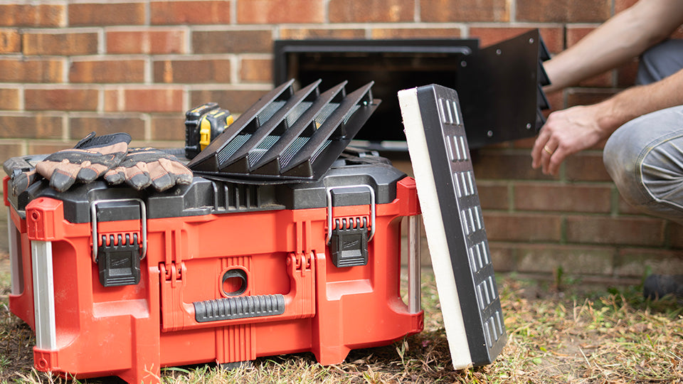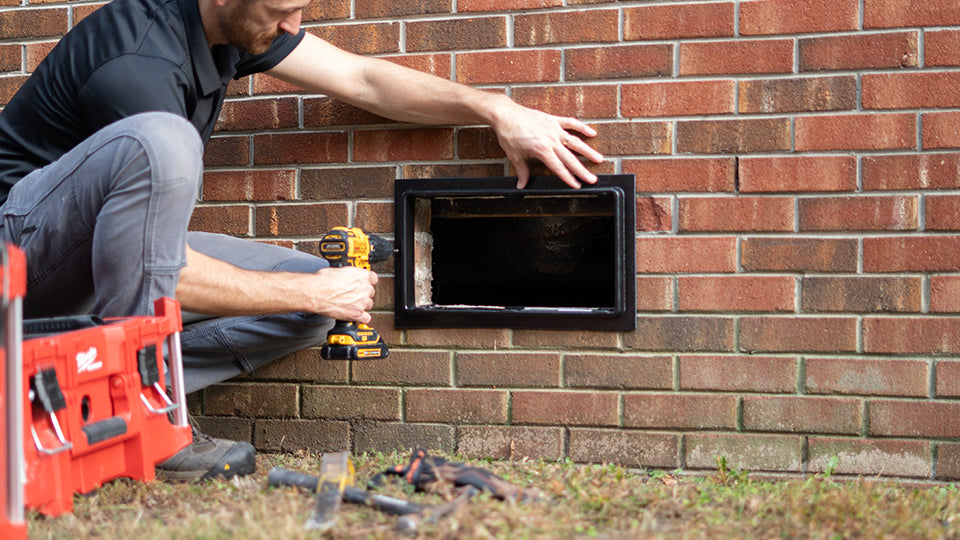 Carefully remove your existing foundation vent. Clean away any remaining debris, old caulk, or mounting materials from the opening.