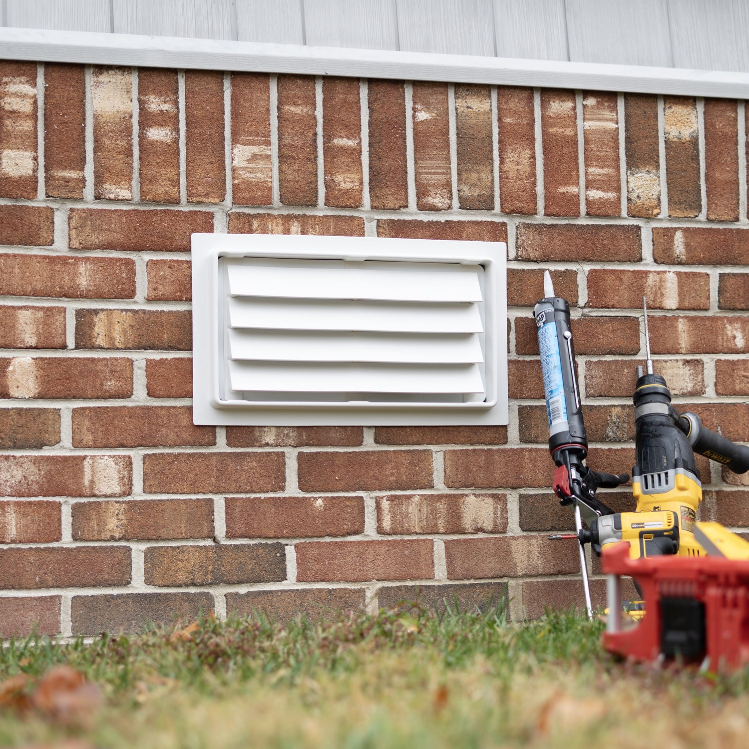 Secure the vent using either premium construction adhesive for a permanent bond or masonry anchors for maximum hold.